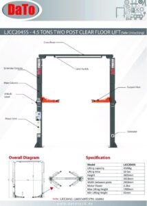 LJCC 2045A/2050A – TWO POST CLEAR FLOOR LIFT